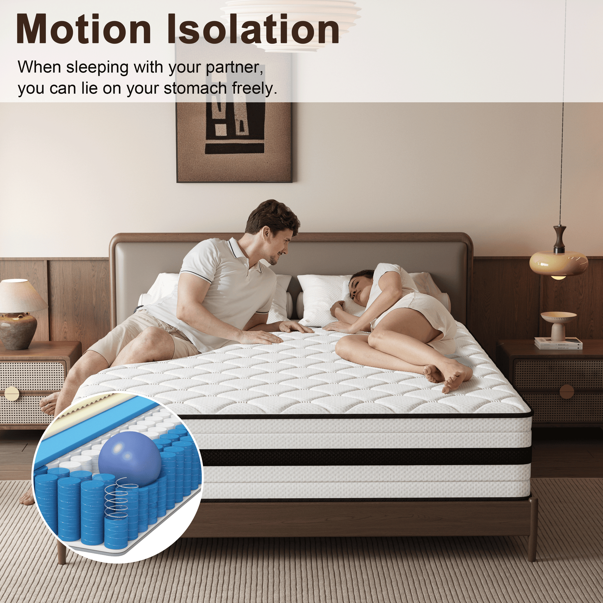 - 【Ergonomics Support System】:The hybrid mattress supported by hundreds of quality and Individual pocket spring, each spring work independently to offer an all-over and average support to 7 parts of your body (Feet, legs, hips, waist, shoulders, neck, head). Multilayer form and pocket coil support systerm can absorb more pressure come from your body, providing more buffers for your body. Fully relax your muscles, greatly improve your sleeping quality.