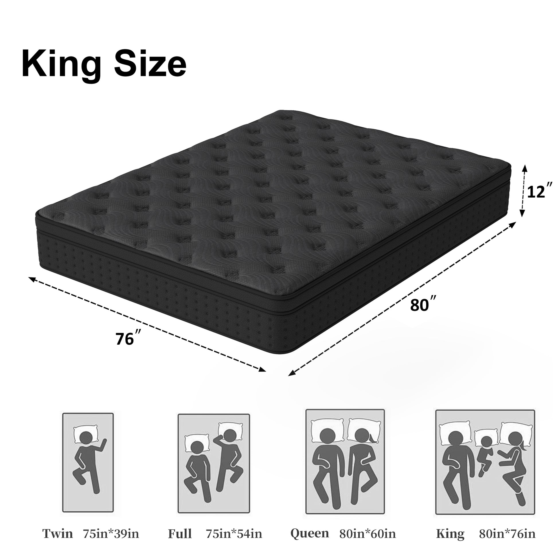 Zekbip 12 inch King Mattress in a Box, Hybrid Gel Memory Foam with Individually Wrapped Pocket Coils, Medium Firm, Pressure Relief, Cooling Sleep Support for Adult